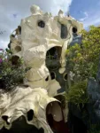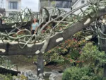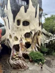 The main structure resembles a massive tree with cement “branches” connecting different areas throughout the property. The building’s exterior resembles a five-story-high banyan tree, with unevenly shaped window openings and branch-like structures that appear to grow along its walls and rise above the roof into the sky.