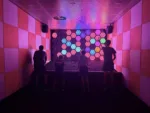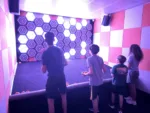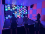 The fifth room offers another variation of light-up targets focused on reaction time and hand-eye coordination. Throw balls to hit particular targets at proper times. Easy settings are a single-color target, while harder settings are targets of a certain color configuration with an outer ring, inner ring, and bullseye.