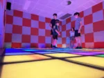 Buttons and panels are spaced around the walls of this room. You run to hit room letters or symbols in sequence to spell words or solve patterns. This one mixes mental challenge with physical effort—remembering what word you’re spelling while sprinting across the space definitely raised our heart rates. It’s a test of both thinking and speed.