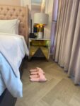 The moment you walk into the Diva Suite, it’s clear that subtlety was not the goal. The room leans fully into its theme with bold, glamorous design and pink everywhere. From the décor to the lighting and furnishings, the space feels intentionally dramatic — the kind of place designed for celebrating or getting ready for a big night out.