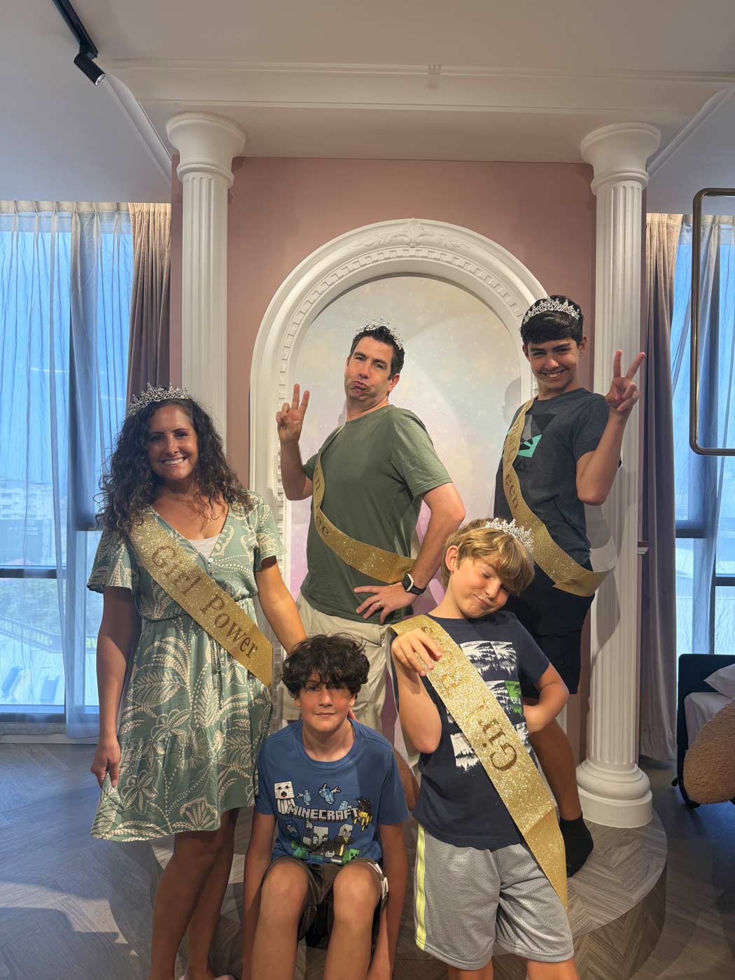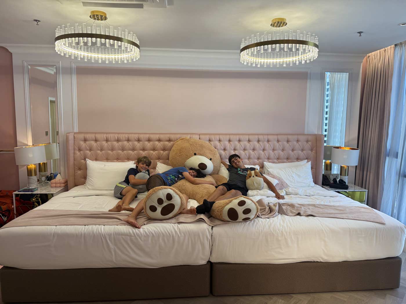 We stayed in the suite with our three boys (ages 16, 14, and 12). Normally, the Diva Suite is configured for four guests with two queen beds, but the hotel kindly made an exception and accommodated our family of five during our stay.