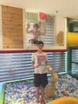 The standout feature is the large ball pit built into the room. Unlike the small play pits you might find in some kids’ spaces, this one is big enough for a full-grown adult to lie down in comfortably. It doesn’t need to be very deep to be fun, and the generous size makes it more than just a decorative feature — it’s actually something kids (and adults) can enjoy using.