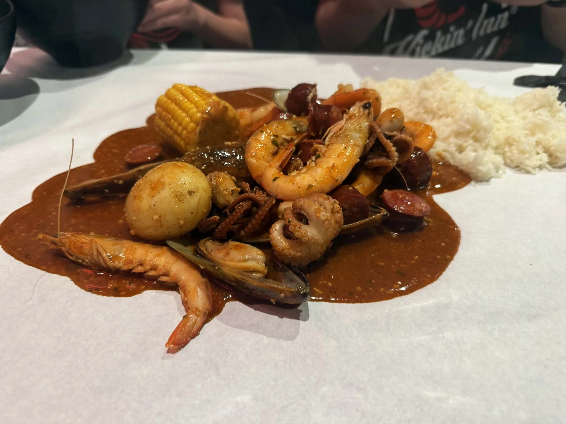 - There are more “comfortable” options like chicken fingers, fries, or corn ribs alongside the seafood boil bag for picky eaters