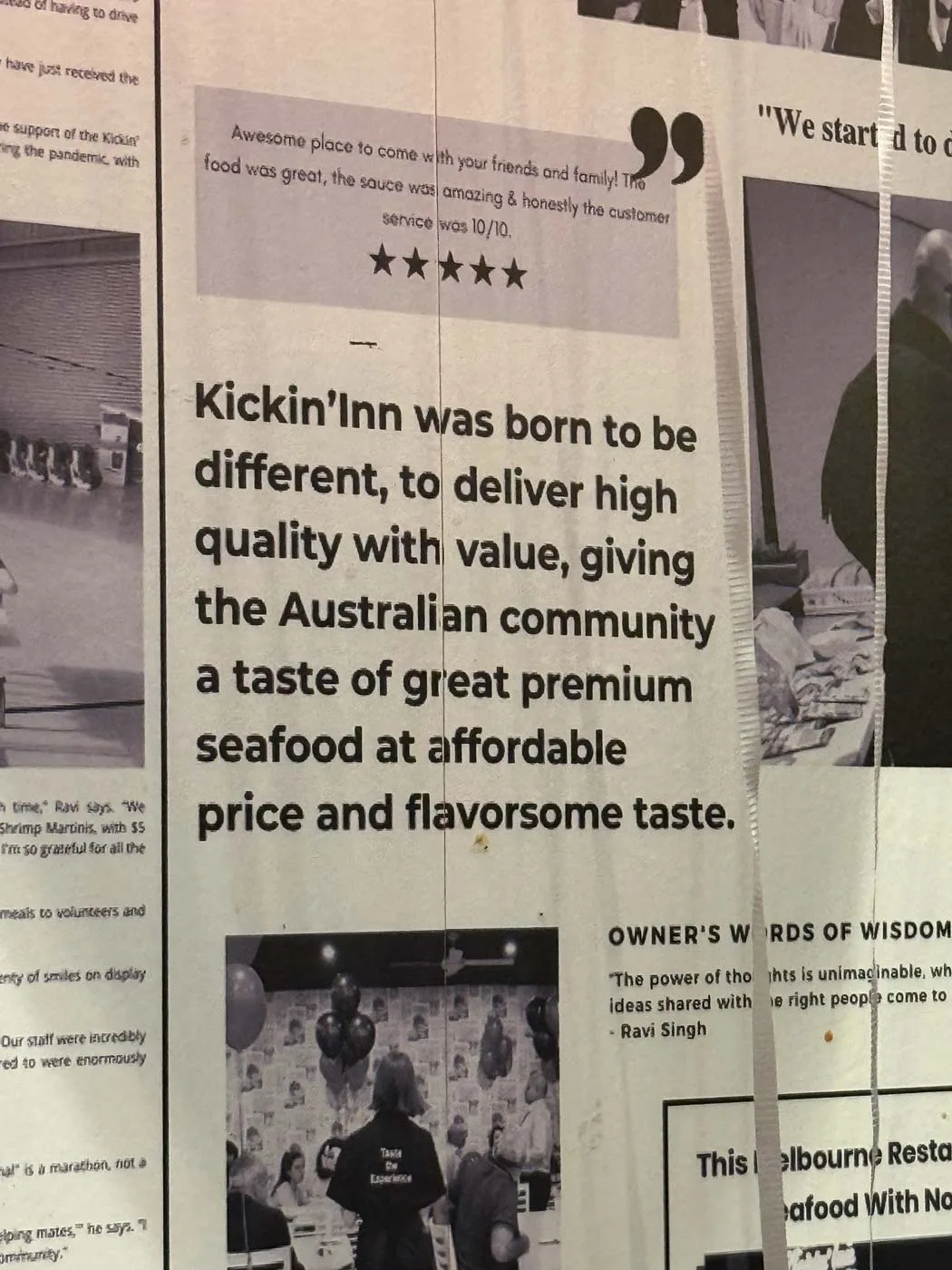 Kickin’Inn is an Australian seafood chain that specializes in southern-style, Cajun-inspired seafood boils. Frankly, we’ve had seafood in the southern US, and this is about as close as you can get without being in Louisiana. Instead of serving your meal on a plate, they bring out plastic bags filled with fresh seafood and sides, which get poured directly onto your paper-covered table. It’s loud, it’s messy, and that’s exactly the point.