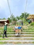The go-karting experience at Cao Nguyen Hoa is designed to mimic the thrill of Mario Kart, featuring colorful karts and two challenging downhill tracks.