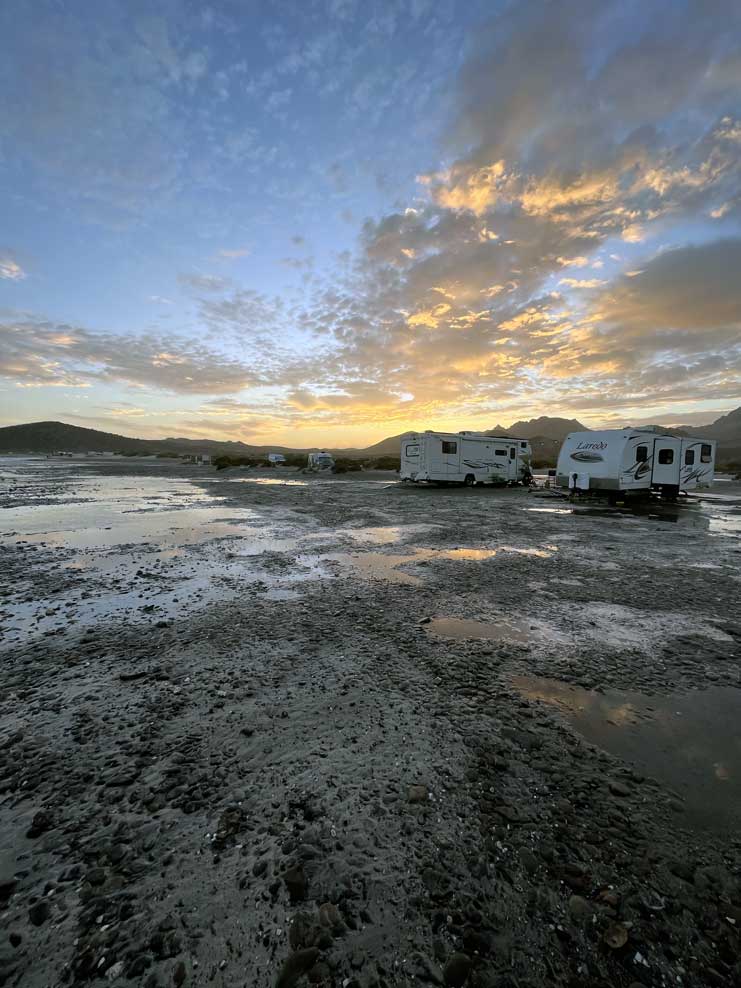 The first year we visited Tecolote, we didn’t experience high winds or very high tide, but on our second visit, we had a few inches of water come up from a combination of high tide and high wind. We were here for 11 days on our most recent trip, and high tide came up for 2 nights.