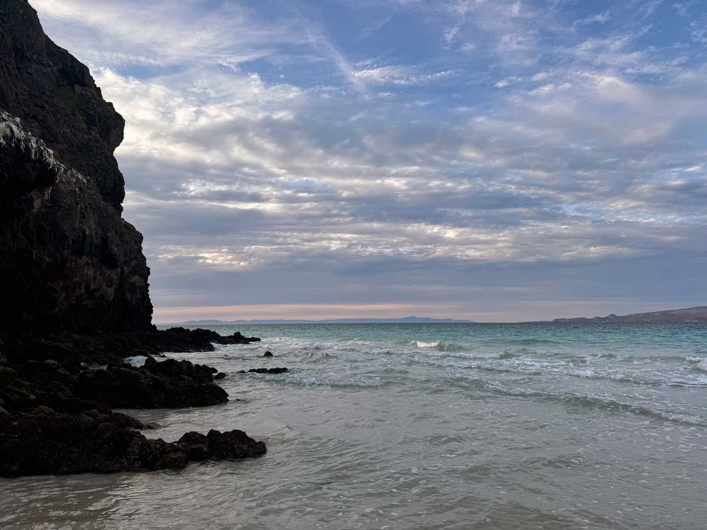 The water at Tecolote is generally wavy – it’s rarely smooth like Santispac or El Requeson – but the snorkeling area to the east is sheltered in the cove. While you will have some waves to prepare for, it’s not as rough as getting in the water around the middle of the beach, which is mostly sandy, and there’s not much to see while snorkeling anyway.