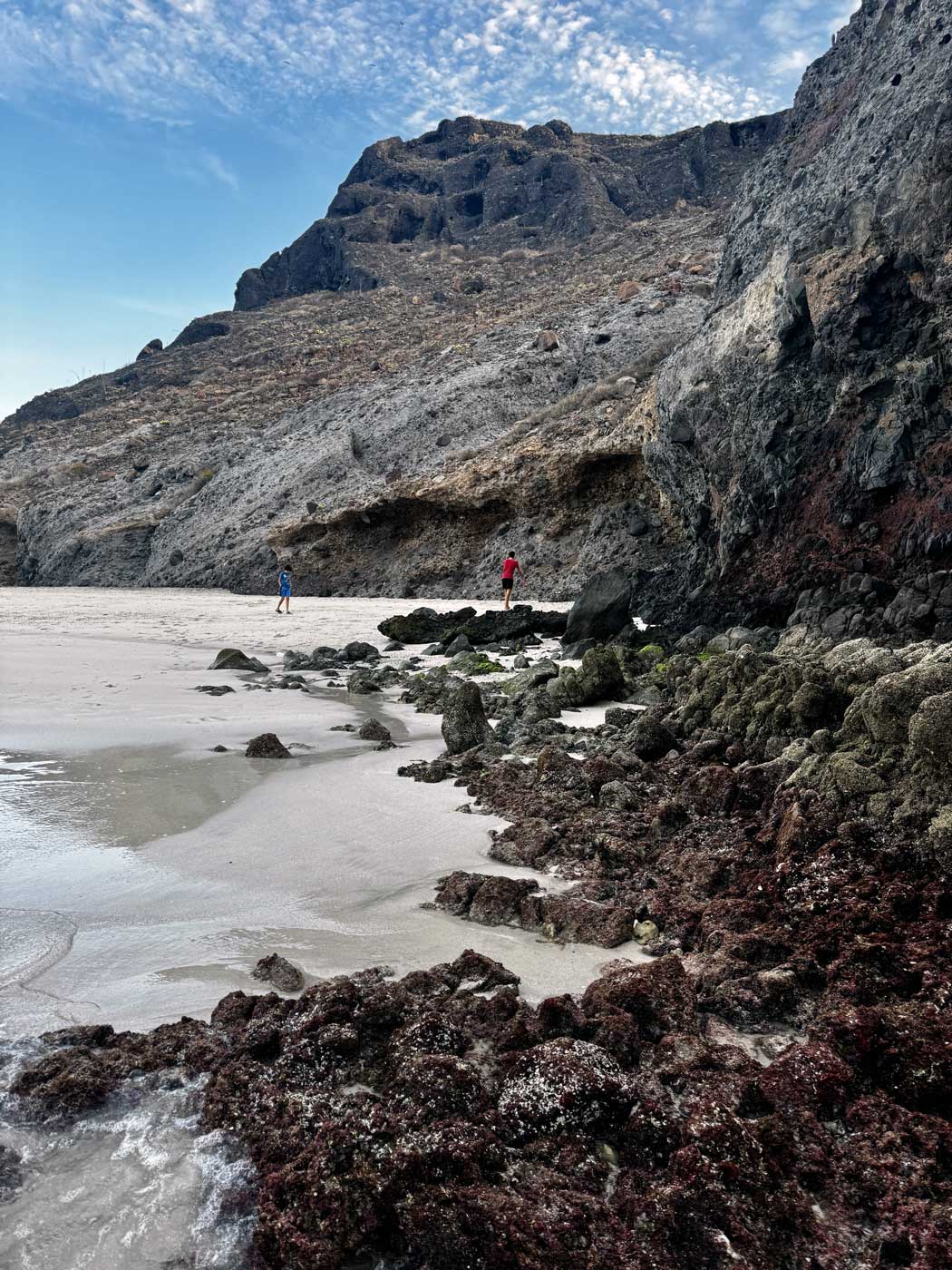 There is a significant difference between high tide and low tide, so walking along Tecolote Beach at low tide exposes all kinds of shells, coral, and smooth rocks and lets you get a glimpse of what’s going on at the water’s edge from minnows to porcupine fish swimming.