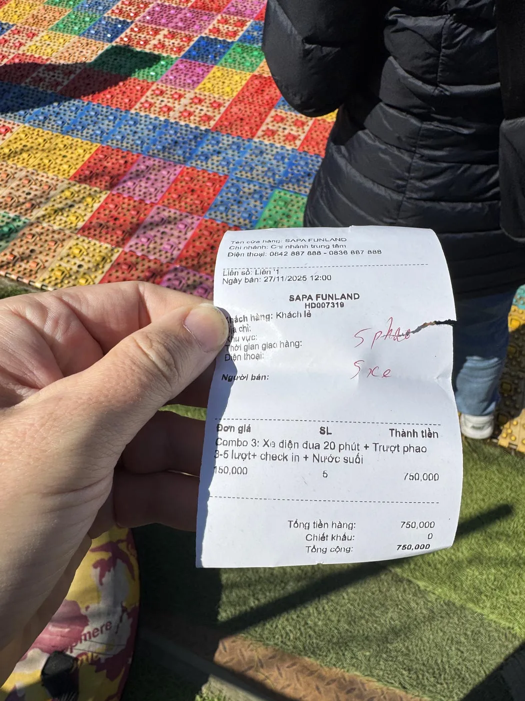 - Admission was 150,000 VND/person (About $6 USD) for the biggest combo for admission, including multiple rides on the rainbow slide and 20 minutes on the electric scooter cars.