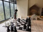 Kid-oriented spaces we saw: the indoor pool area with a kids’ pool, a games room with age-appropriate activities, and dedicated play areas. The games room seemed suitable for tweens and younger kids. Most of the climbing activities would be for younger kids, but we enjoyed the life-size chessboard.