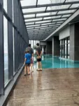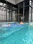 The jacuzzi area sits surrounded by greenery, creating a slightly more relaxed vibe than the main pool deck. It fits maybe 6-8 people comfortably. It felt family-friendly during the day. Our boys don’t care much for sitting still, so the pools were a better option.