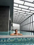 The steam room and sauna are located near the pool area within the wellness facilities. We didn’t notice posted age restrictions, but we used them with our boys (11, 14, and 16) without issue.