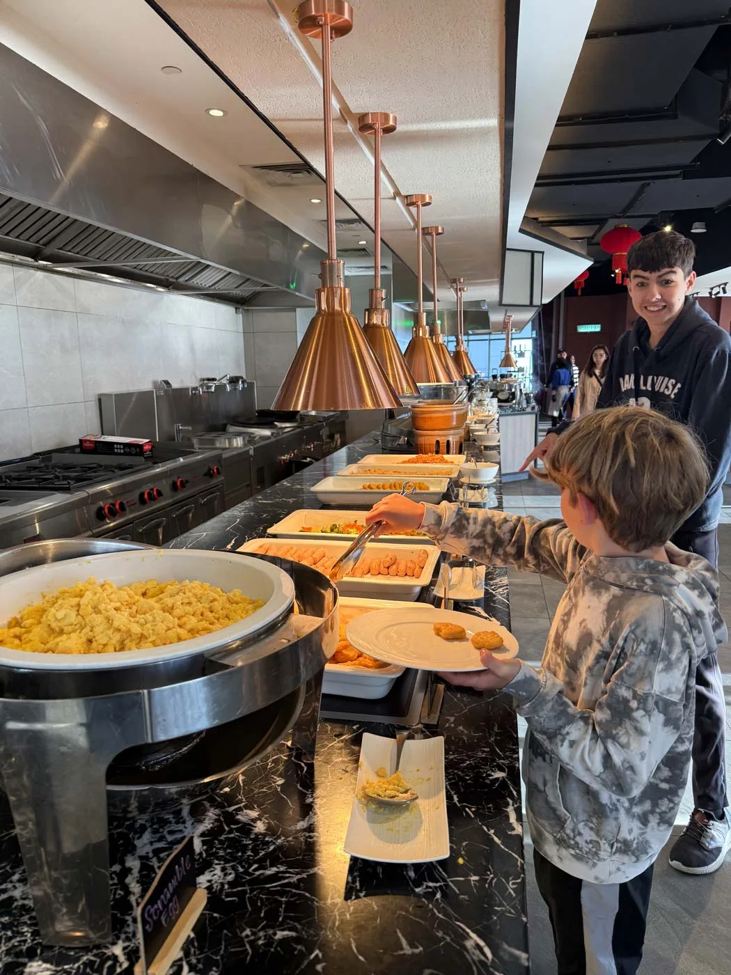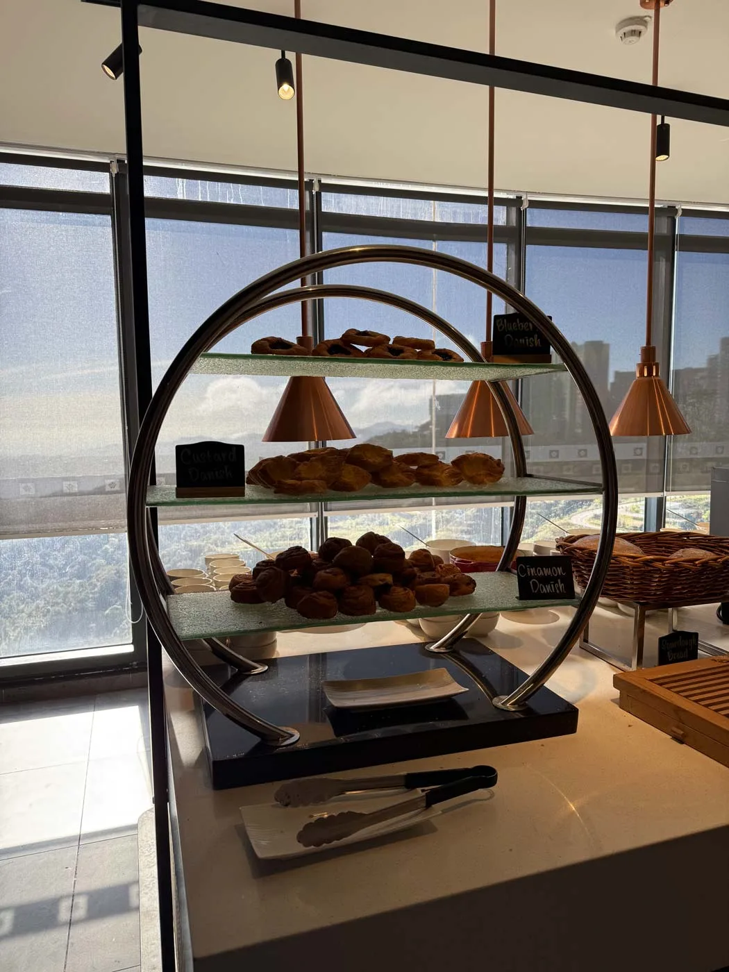 The breakfast buffet was a highlight for us. It’s served at the Ambrosia restaurant on Level 12, typically running from around 6:30 am to 10:30 am (check current times during your stay). During peak hours around 8-9 am, it got busy but not overwhelmingly so—we found seating without having to wait for a table. (We had been up at Hoverland on the roof for sunrise, so it was around 8am when we went for breakfast).
