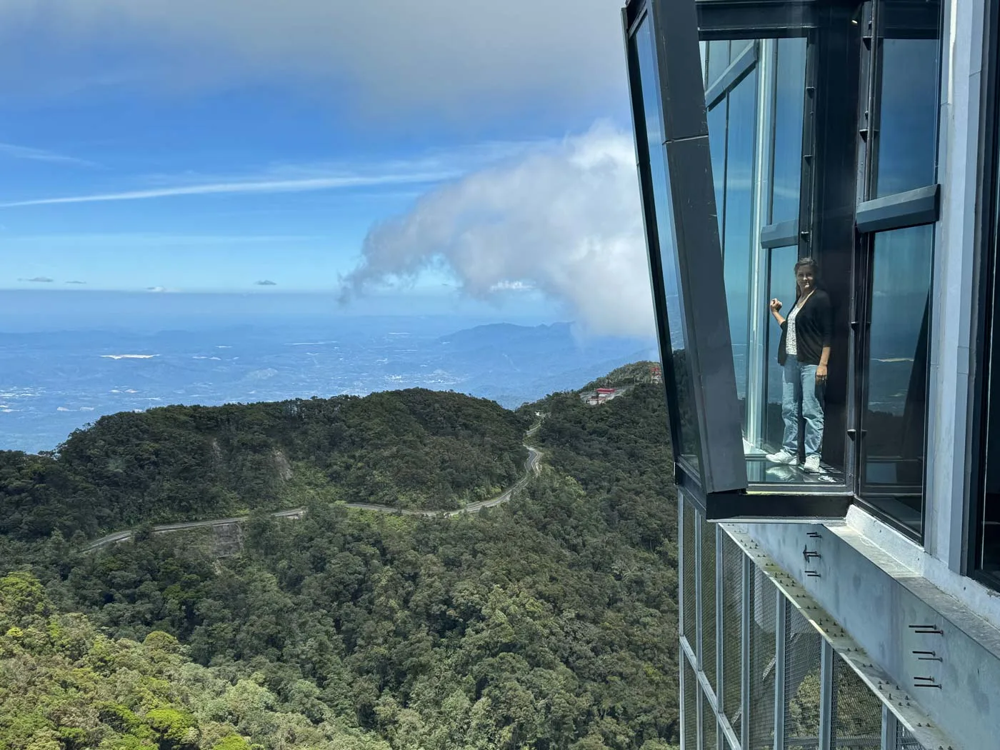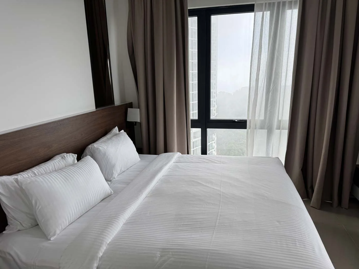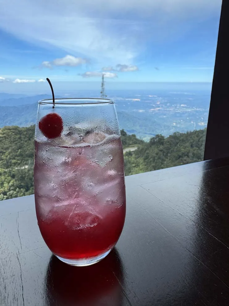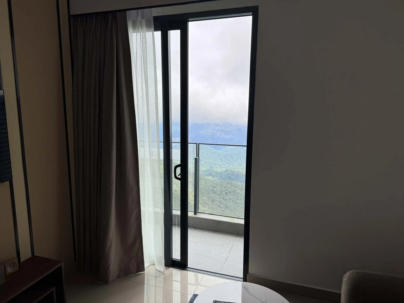 From the bedrooms and balcony on the mountain side, you’re looking at the picturesque landscape of the Titiwangsa range. Mornings bring cooler light and often a blanket of mist (yes, we went up to the roof for sunrise. You can access the roof for free, or purchase tickets for “Hoverland” and face East on an elevated platform with a cafe and photo spots – worth it if you’re going to get up for sunrise anyway).